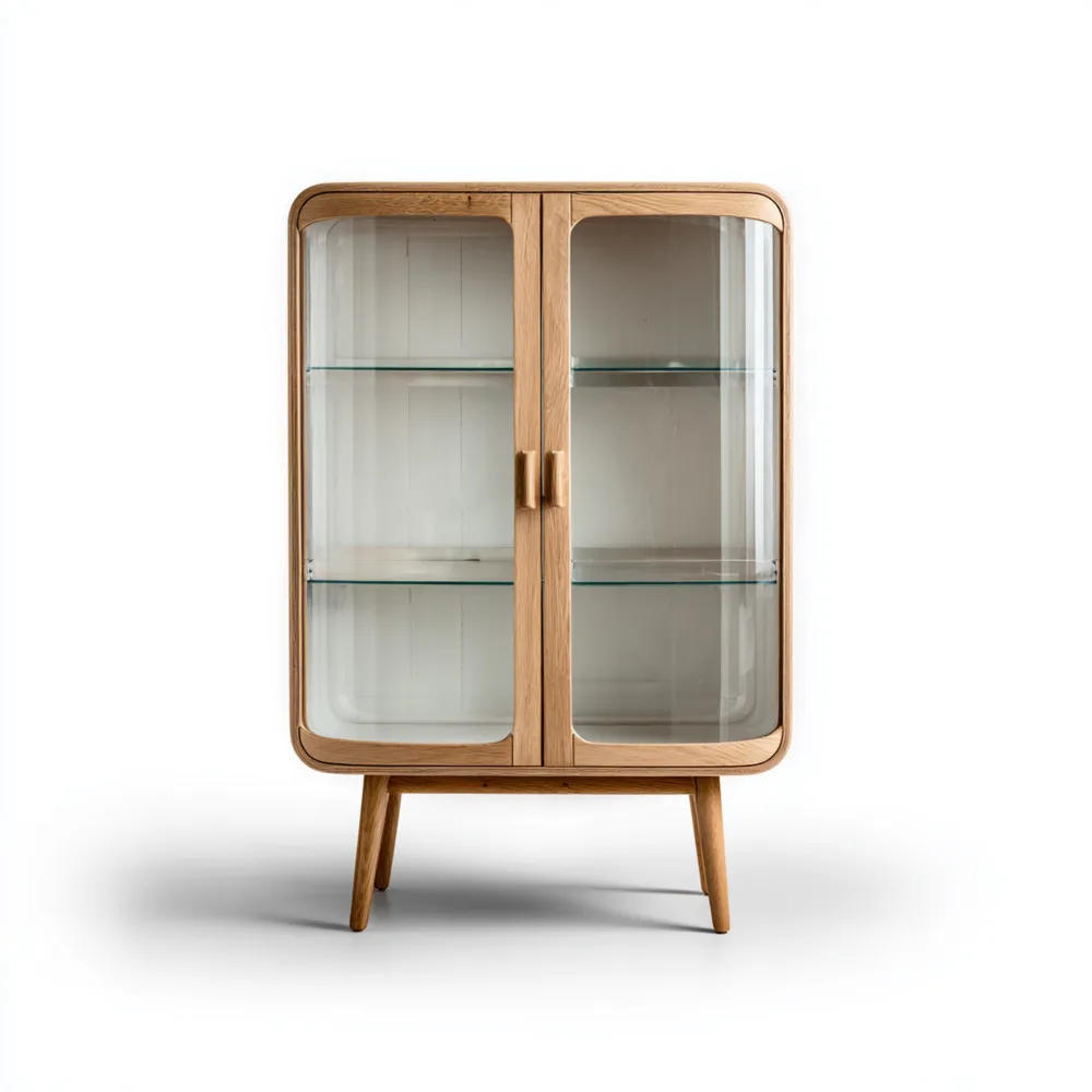 Matériau et FabricationFabriquée en bois massif de haute qualité avec des portes en verre transparent, cette vitrine offre une finition de couleur Naturel qui s'harmonise facilement avec divers styles de décoration.